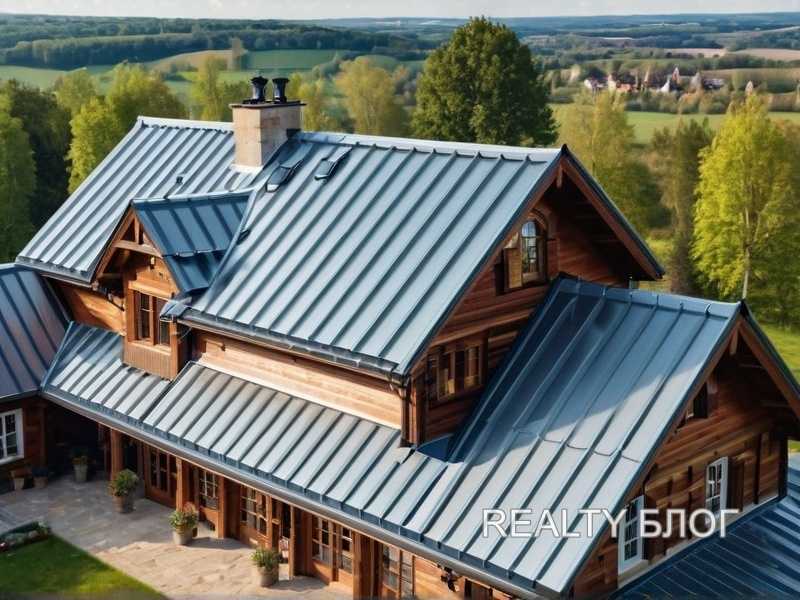 Металлические листы обойдутся в 500–900 рублей за квадратный метр, в зависимости от толщины и покрытия. Монтаж требует от 250 до 400 рублей за квадратный метр, учитывая крепежные элементы и профили для коньков и карнизов. Металлическая кровля быстрее нагревается и издает больше шума при осадках, но срок службы достигает 35–50 лет, а замена отдельных листов проще, чем у битумной кровли.