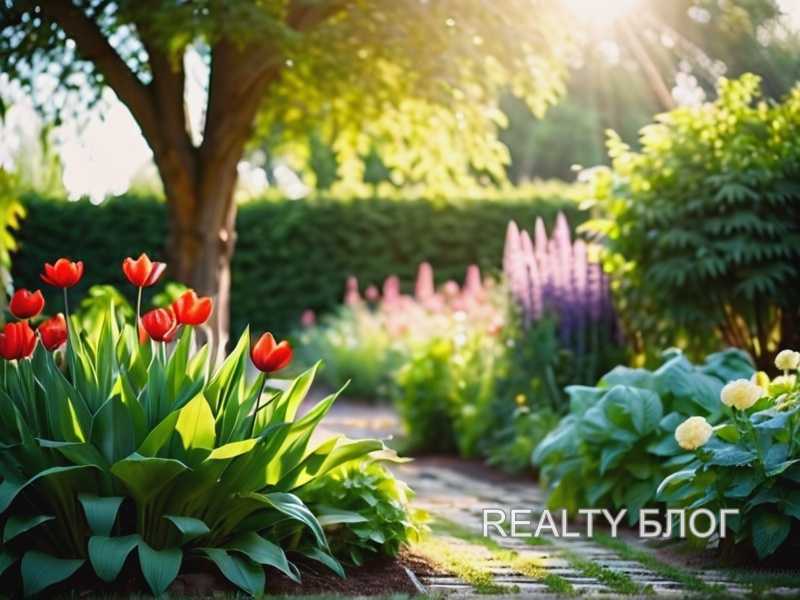 Для дополнительного озеленения у кромки пруда применяют ирисы, осоку или дербенник. Эти растения связывают почву, препятствуя эрозии, и формируют выразительное оформление береговой зоны. Вдоль тропинок можно высадить куртины хосты или астильбы, что подчеркнёт глубину композиции и сделает переходные участки более структурированными.